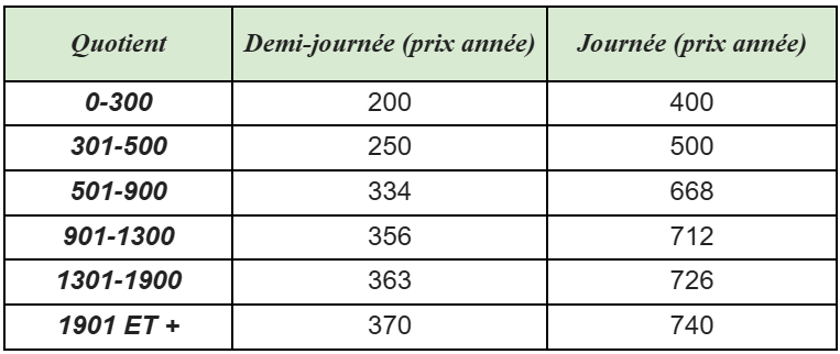 L’inscription se fait à l’année, avec la possibilité de s’inscrire à la demi-journée (matin et/ou après-midi).